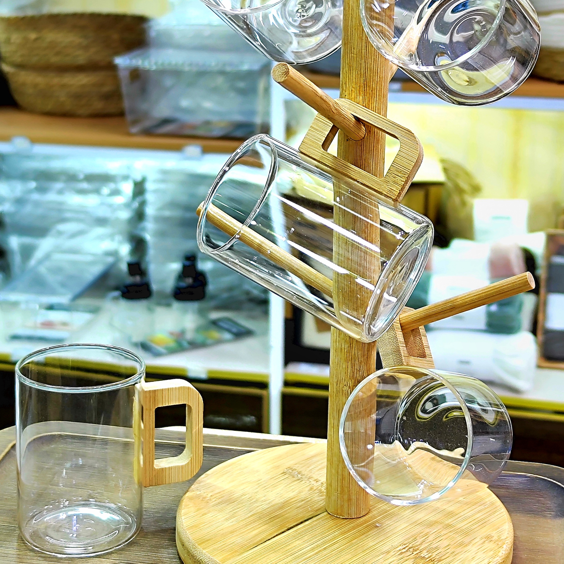 لیوان پیرکس با دسته بامبو وارداتی با کیفیت عالی شعله مستقیم ظرفیت ۳۰۰ میل ابعاد: قطر ۶ ارتفاع ۸/۵ سانت