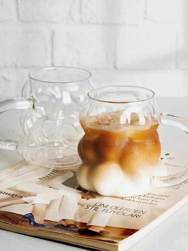 جنس پیرکس با کیفیت طراحی حبابی یا انگوری دستهدار برای راحتی بیشتر، ظرفیت مناسب، طراحی زیبا و منحصر به فرد، مقاومت در برابر حرارت، قابل شستشو و نگهداری آسان. انتخابی مناسب برای مهمانیها و مناسبتها.